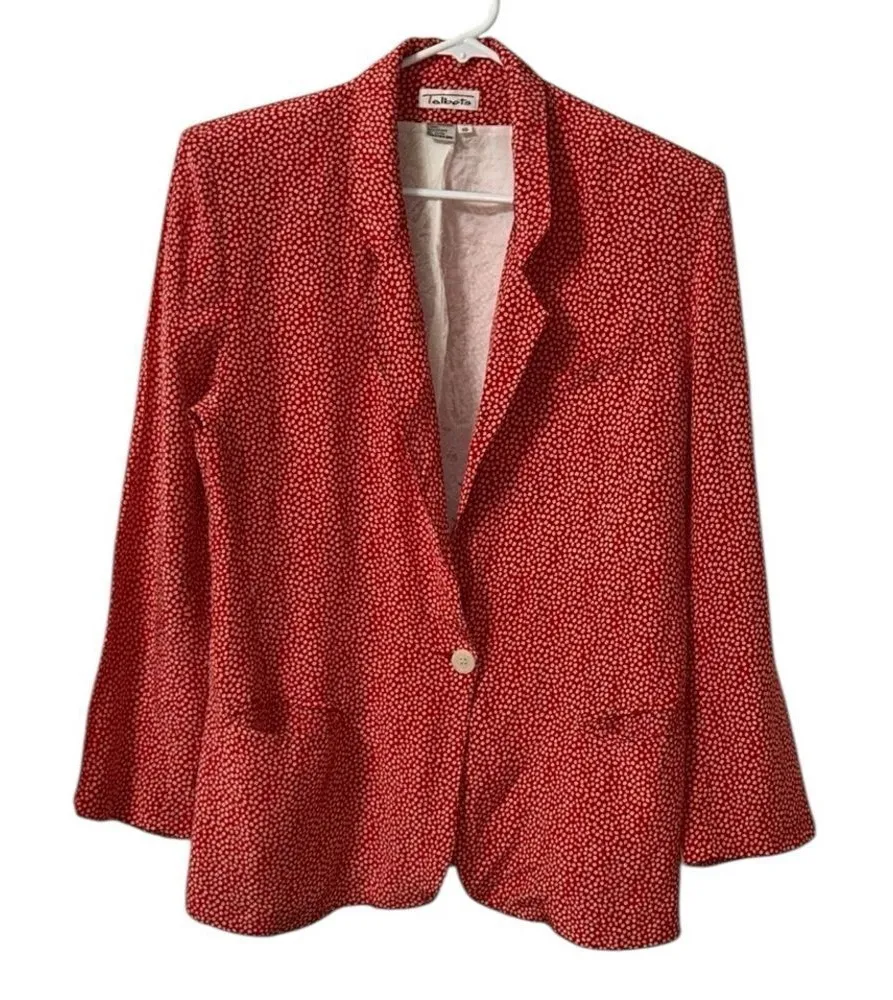 Talbots Red & White Print Silk Blazer,Light Shoulder Pad,Button front closure.EUC.Approx measurement... Show more