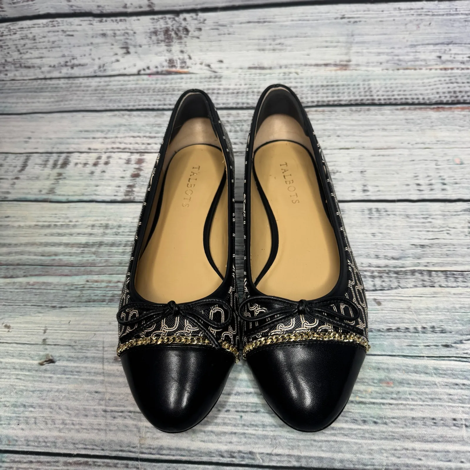 Brand: Talbots Women’s US size 8.5 Style: ballet / cap toe flats with patterned textile body + sol... Show more