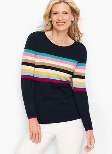 Talbots Women's Navy Blue Multicolor Stripe Crewneck Sweater Size Medium Petite Long Sleeve