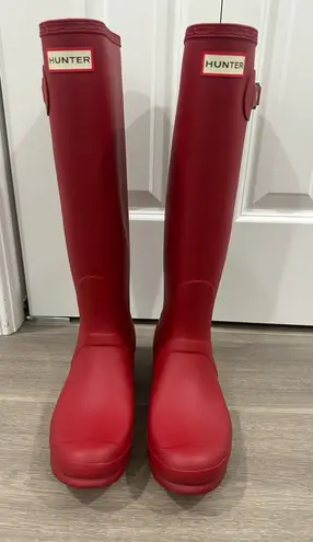 Red hunter rain boots lightly worn Worn very few times!