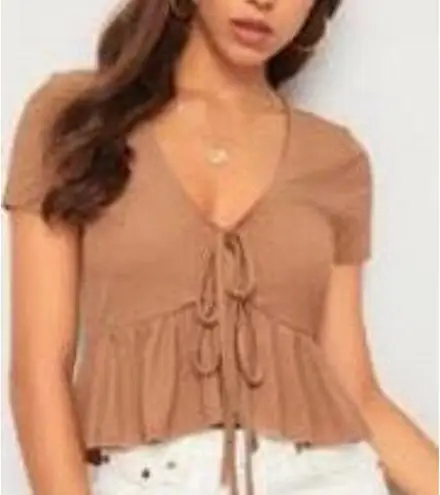 Tan tie front top - a flattering and comfortable choice for a night out Brown - $13 - From Shanna