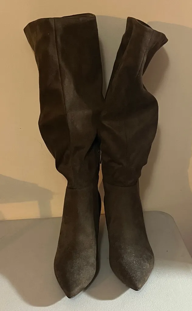 Step out in style with these elegant brown suede knee-high boots. Perfect for any occasion, they off... Show more