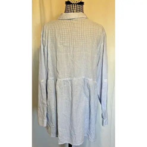 Tassels n lace Women Blue Striped Long Sleeve Blouse Floral Embroidered Size Med - $13 - From Brandi