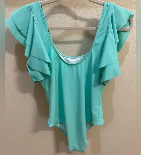 Teal One Piece Ruffle Swimsuit Women's Sz Medium Blue - $9 - From Mary Cathryne