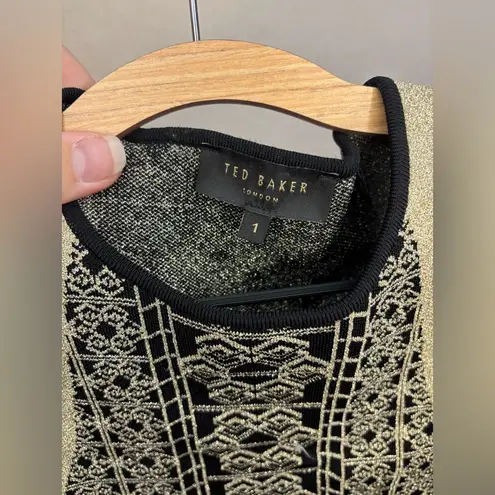 Ted Baker size 1= US 0-2 / XS See size chart Gold shimmer fabric Geometric design along bodice Gold... Show more