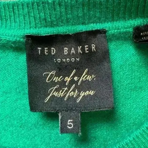 Ted Baker lace shoulder long sleeve sweater in bright green color m, under the arm some rubbing look... Show more