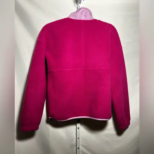 Cozy fleece jacket in pink with a light pink pocket and collar. Perfect for chilly days. Zips up Mu... Show more