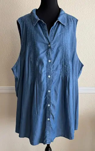 Pit to Pit: 26” relaxed / 30” stretched Full Length: 32” Terra & Sky 4X (28W–30W) 100% Lyocell Chambray Soft chambray blouse with a relaxed drape, perfect for everyday wear. Versatile piece that layers easily for casual outfits or styled alone. Preowned. In excellent condition. Clean, with no flaws or damage. Packaged with care. Ships same or next day. Offers welcome. Bundle and save! ladybugthreads 7G86V