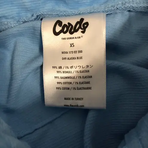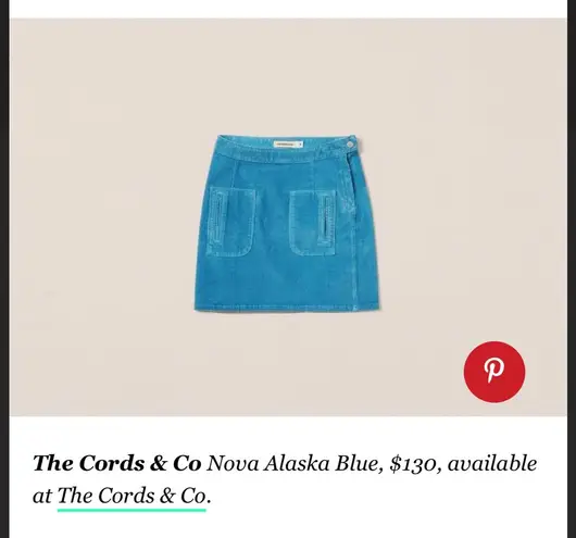 Sky Blue corduroy skirt from the Cords & Co. Classic, mid-waist, A-line skirt. Alaska Blue color. The style of the skirt is Nova. Side zipper and button closure. Materials: 99% cotton, 1% elastane I have XS, S, and M sizes available