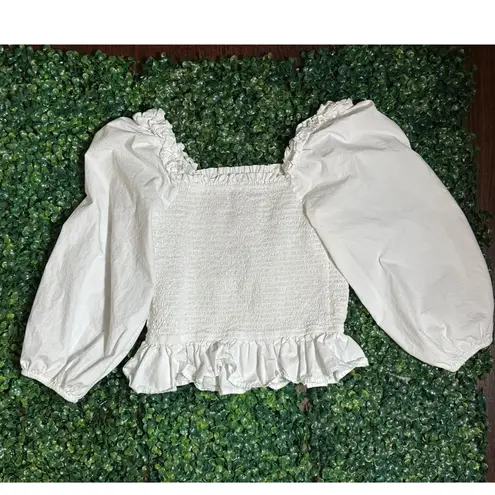 The Drop White Bohemian Cottagecore Ribbed Puffy Sleeve Top Size Medium - $15 - From Thrifted