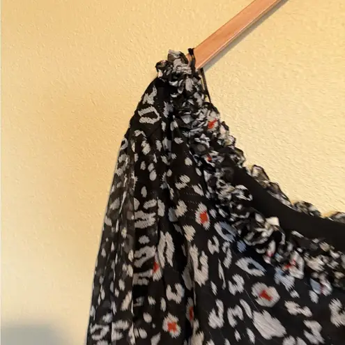 The East Order Black Metallic Chiffon One Sleeve Ruffle Leopard Print Blouse M Size M - $35 - From Natalee