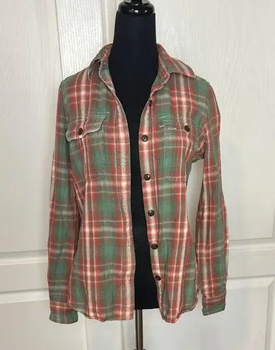 THE FIELD GREEN & PINK PLAID BUTTON UP FLANNEL Elbow Patches Size 4 - $10 - From Sausy