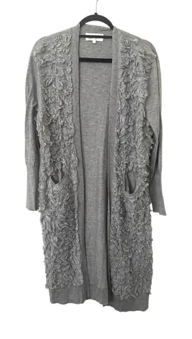 THE GREAT Wool Blend Loop Fringe Long Cardigan Sz 2 (Medium) Light grey fringe detail cardigan Long,... Show more