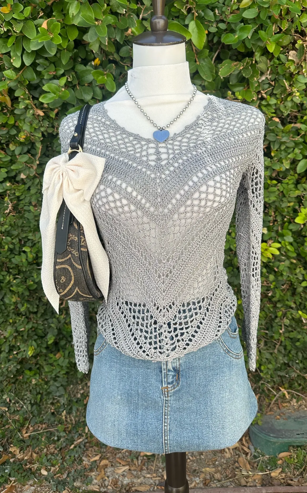 ✨Grey crochet top ✨size XS brand is The Limited ✨cutest bell sleeves with beading detailing!!... Show more