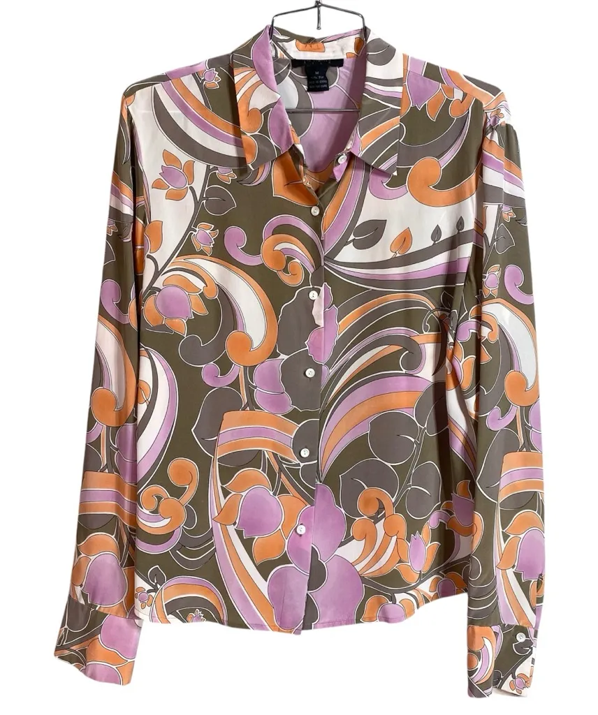 100% Silk Limited Silk Button Up size womens medium ptp 19” total length 25” see all pictures for co... Show more