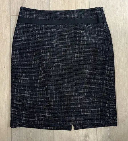 Description: Very dark navy blue pencil skirt. The skirt has a tweed like look with white stitching... Show more