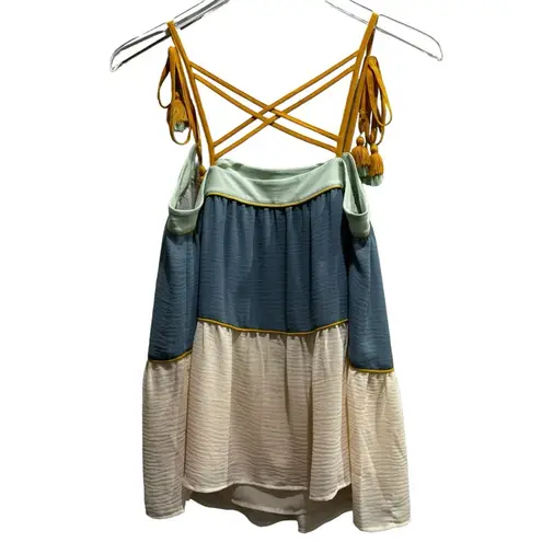 The Loft Poolside Peplum Color block Tassel Strap Cami Boho Blue Cream. Lined. Size:XS Pit to Pit f... Show more