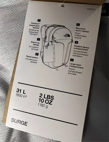 TNF White Metallic Melange - Mid Grey SURGE CLASSIC. With a 31-liter volume, the Surge backpack ha... Show more