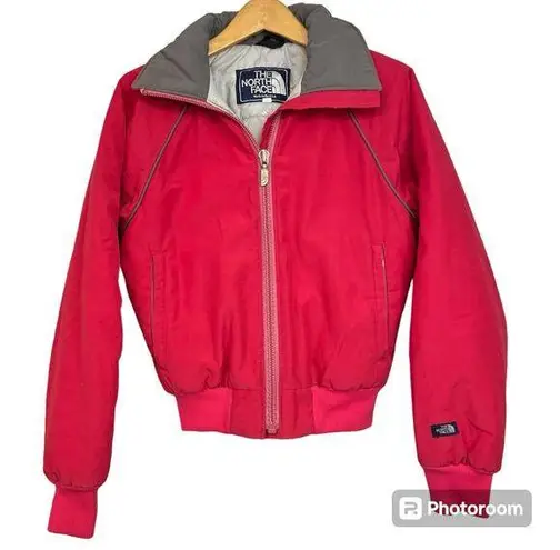 The North Face Vintage pink ski coat Size 6 Made in USA Pink with grey trim Full zip Zipper pockets... Show more