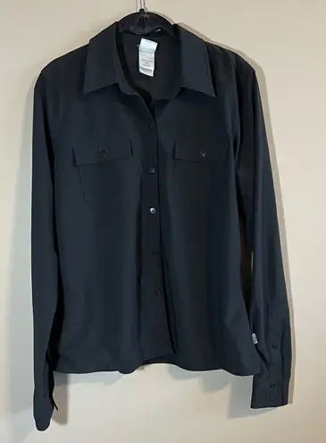 The North Face women’s black button down collared long sleeve top. Zippered pocket on side. Size l... Show more