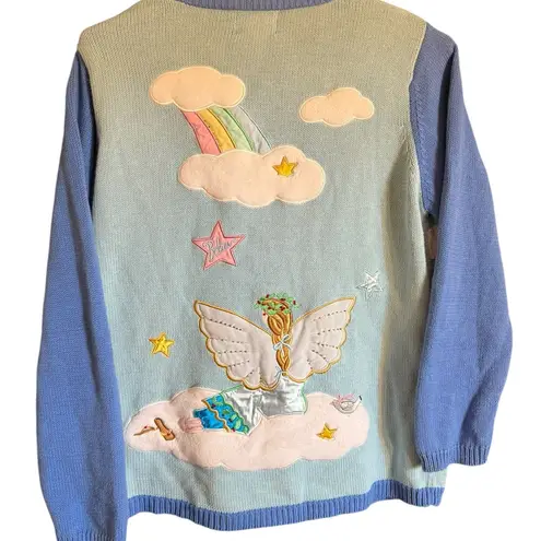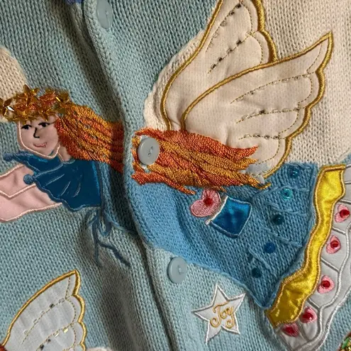 The Quacker Factory Blue Whimsical Angel Knit Button Up Sweater Size Large - $53 - From Heidi