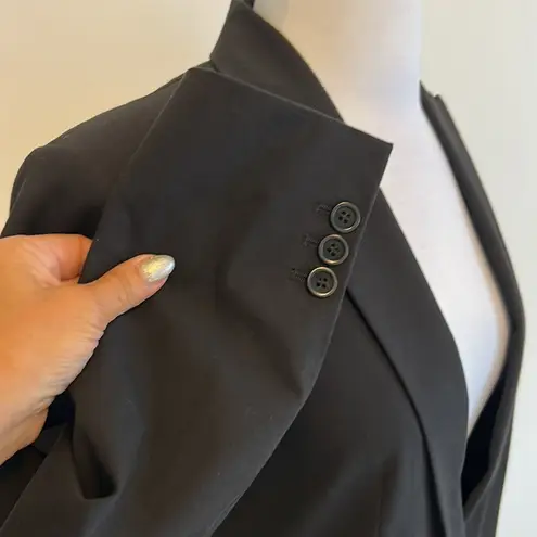 Cotton blend with some stretch. Single button front closure. Buttoned cuffs. Front welt pockets. Bac... Show more
