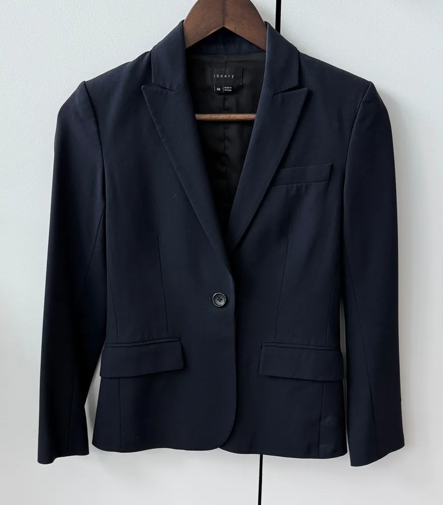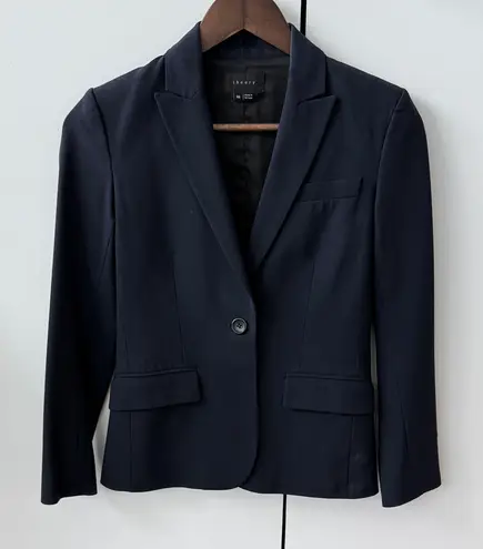 Chic navy blazer by Theory. Tailored fit with single-button closure. Ideal for professional settings... Show more