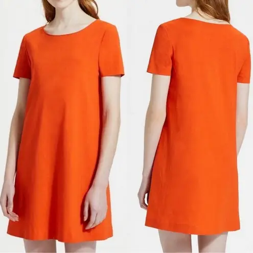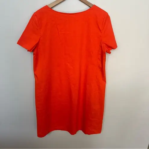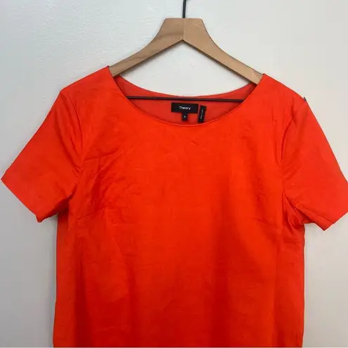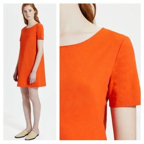 Theory Panel Shift Linen Mini Dress in Crunch Wash Size XL Bold and Fun Orange Short Sleeve Dres... Show more