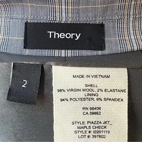 New without tags! Theory Piazza double breasted blazer in maple check plaid gray. Stretch wool fabr... Show more