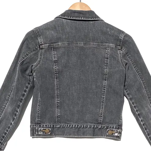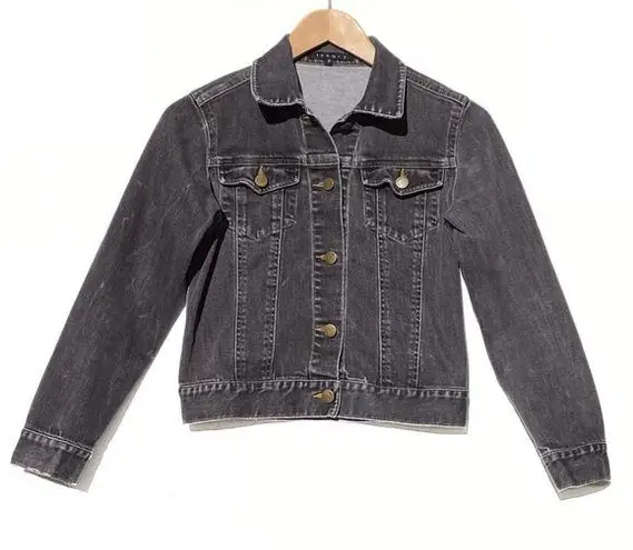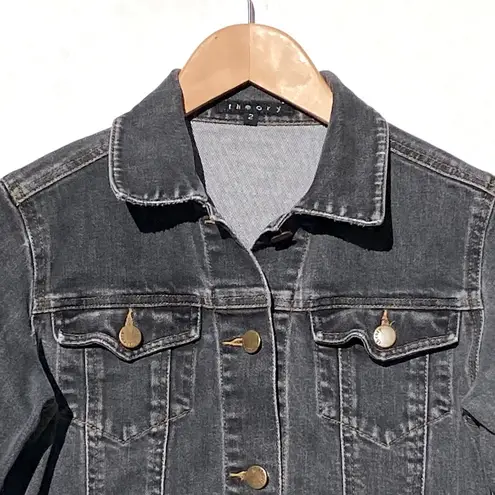 THEORY Women’s Black Wash Denim Trucker Jacket Predistressed details Size 2
