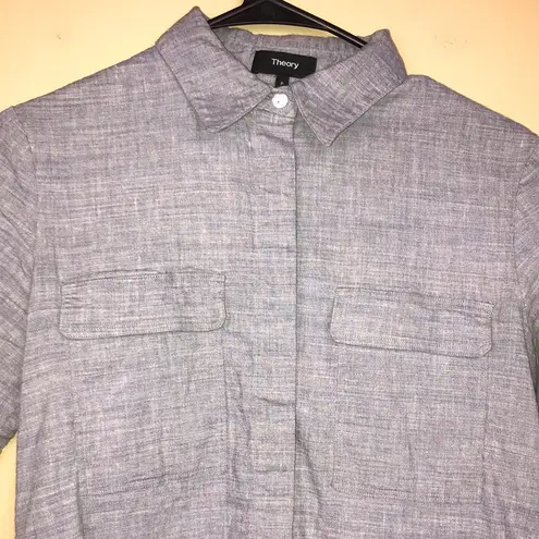 Theory Women’s Linen Blend Hidden Button-Up Short Sleeve Shirt Theory size P = Women’s size US XS... Show more