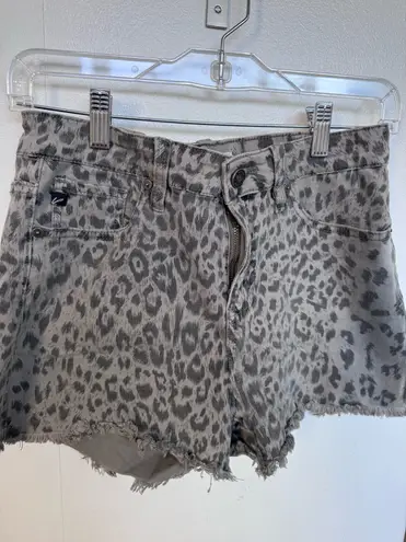 These KanCan jean shorts feature a chic gray color with a stylish leopard print design, offering a trendy and comfortable fit. The elastic waistband ensures ease of wear, while the soft fabric provides all-day comfort. Perfect for adding a touch of wild elegance to your casual wardrobe. Size M - $20 - From Erika