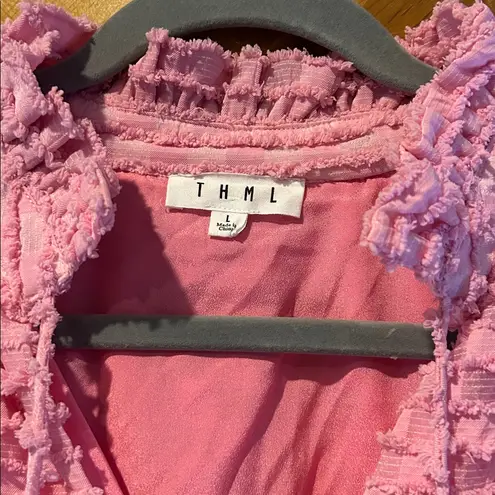 THML bright pink tiered ruffle textured high collar dress Size L - $36 - From Morgan