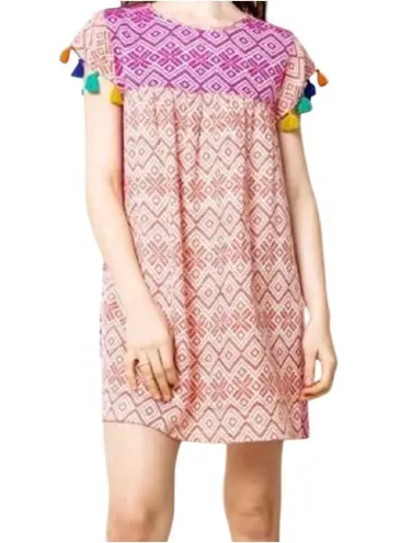 THML Jacquard Dress Tassel Sleeve Colorblock Printed Knit Boho Multicolor Small Red - $45 - From Pearl