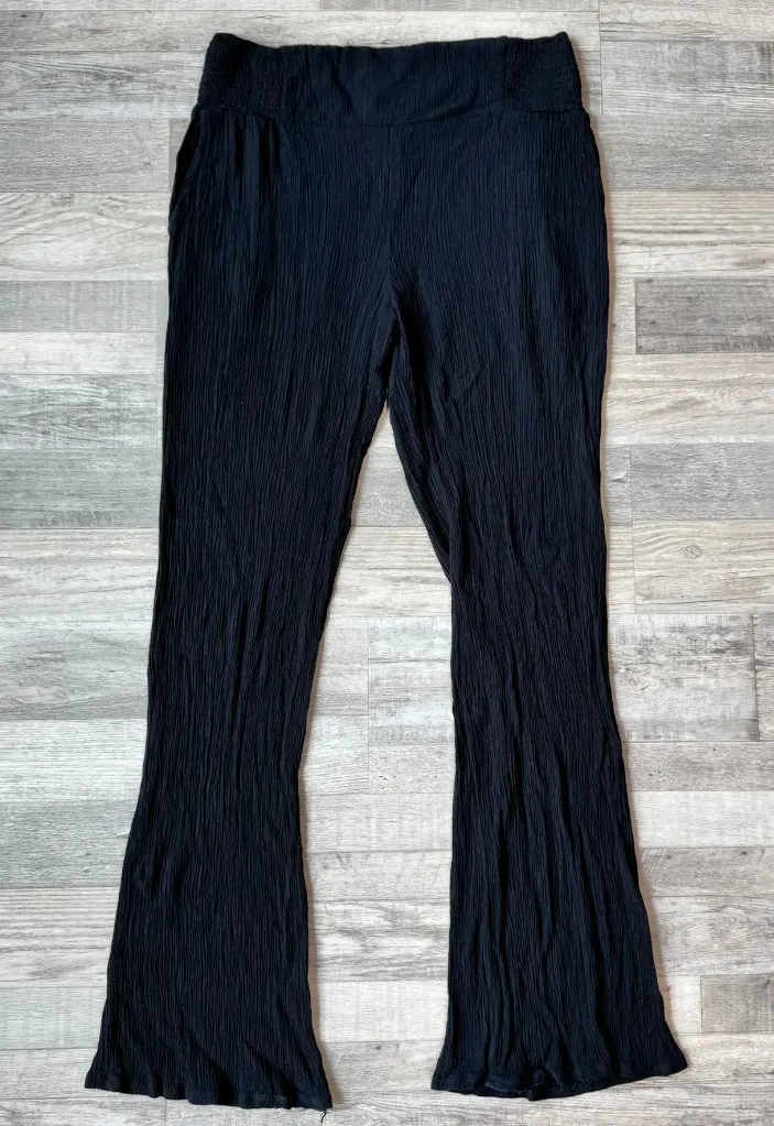 Three Dots Black Crinkle Gauze Smocked Waist Pants Pockets L2 Size L - $23 - From Rebekah