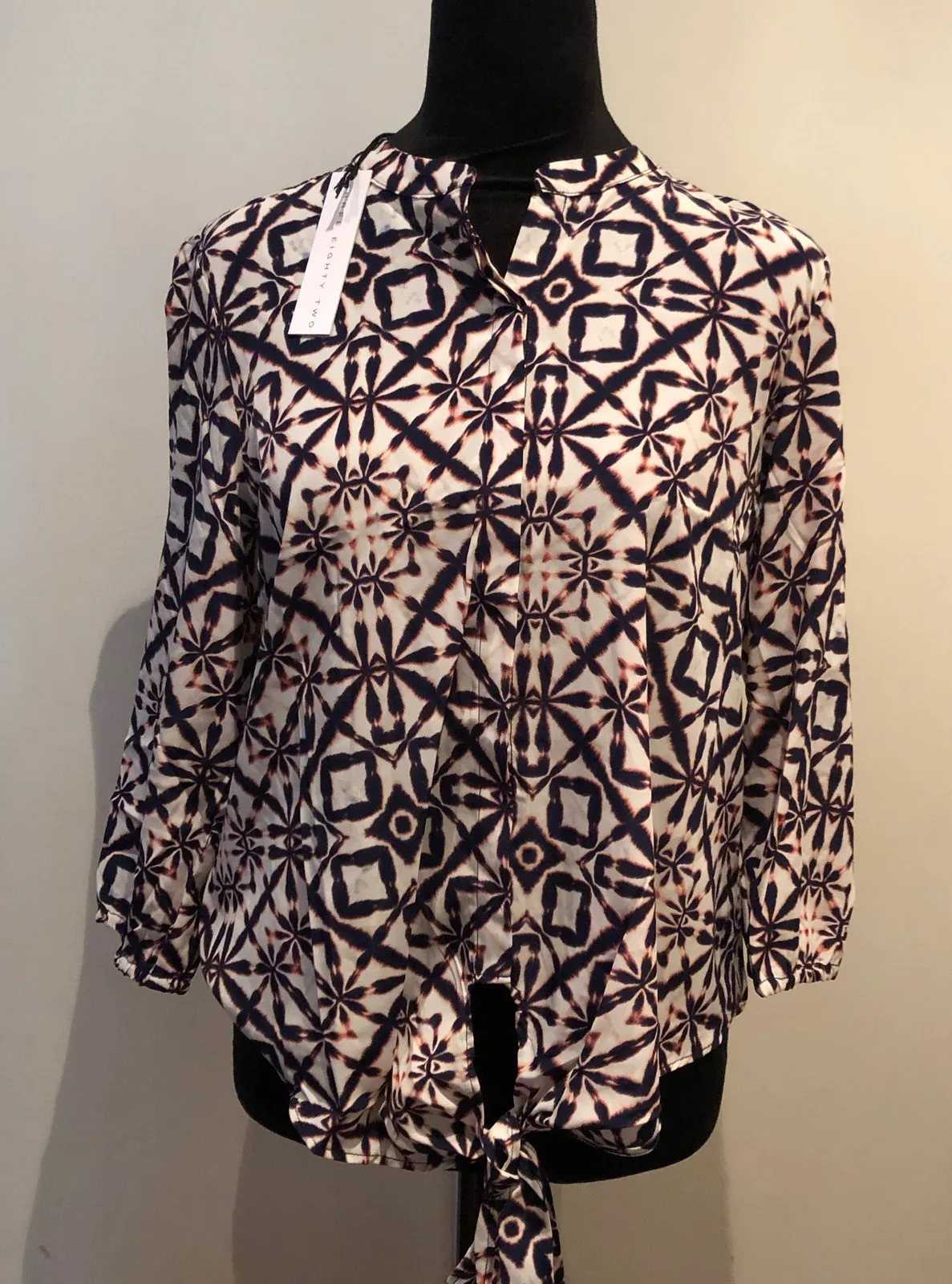 Three Eighty Two Women's Printed Tie-Front Blouse, 3/4 Sleeve, Size Small, NWT Stylish and versatil... Show more