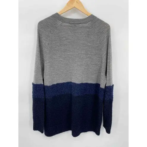 TIBI Cardigan Sweater Womens Small - oversized Gray Blue Stripe Fuzzy Knit Pockets Button Front 50%... Show more