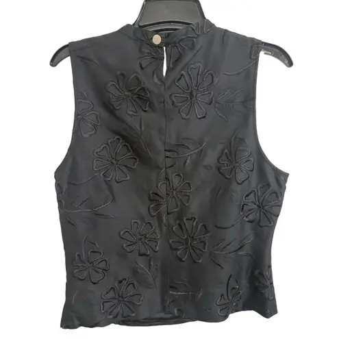 Office Fairy Grunge Tibi Women’s Size 12 Black Sleeveless Tank Blouse Fully Floral Embroidered... Show more