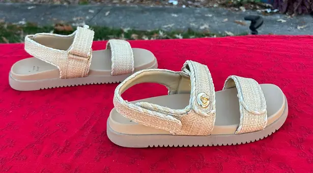 Never worn/ only tried on Platform footbed sandals with 1.25in heel •Cushioned insole •2-band upper... Show more