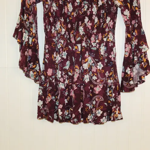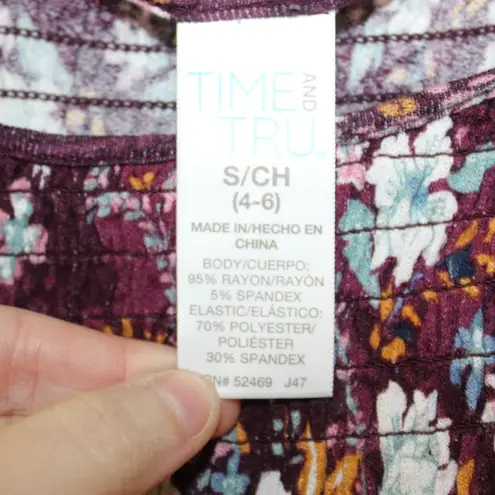 Time and Tru Burgundy Floral Smocked Top Size Small - $15 - From Kaylyn