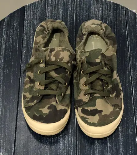 Time me Tru Memory Foam Camo sneakers. Green camo design. Fabric upper with bumper toe and attached... Show more