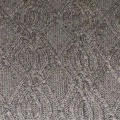 Light grey sweater Cable knit design Fabric has flecks of pink in it Crewneck Polyester/acrylic bl... Show more