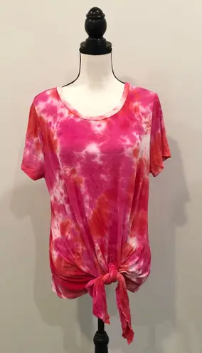 Time and Tru tie dye maternity tee. Pink, white, coral, and a bit of orange. Bottom left side tie. S... Show more