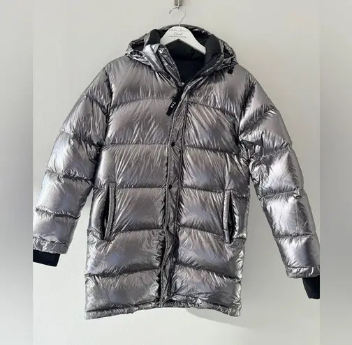Size S Worn few times No damage or flaws! Mid length Silver metallic color