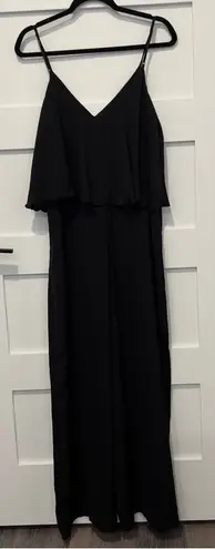 Elegant black jumpsuit with a flowing ruffle top and wide legs. Zip closure on the side Preowned g... Show more