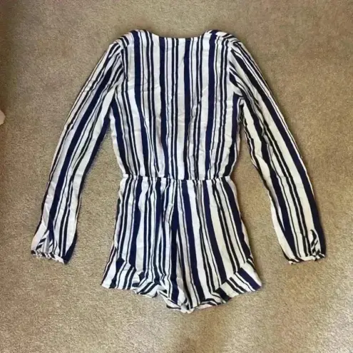 Tobi blue and white striped long sleeve romper in size small.