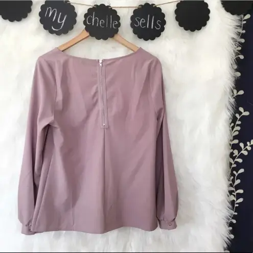 Pretty scoop neck blouse in mauve. Cute square gold button detail and back zip closure. Size Small,... Show more