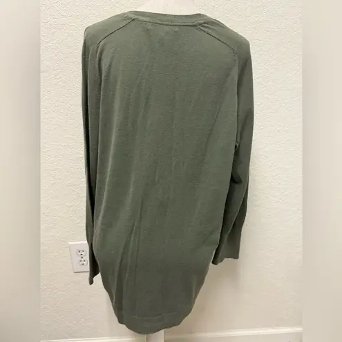 Elegant and cozy cardigan. Features a deep green hue. Ideal for layering. Size XL 60% Cotton 40% Vis... Show more