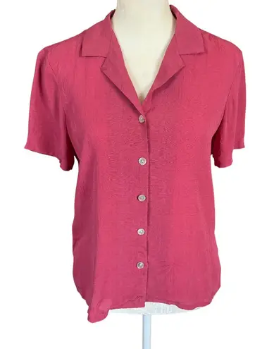 Women's Tommy Bahama short sleeve pink collared button up silk shirt, size small 4-6. This has palm... Show more