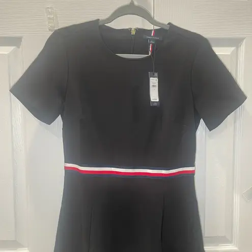 This casual black midi dress by Tommy Hilfiger features a classic A-line silhouette with a crew neck... Show more